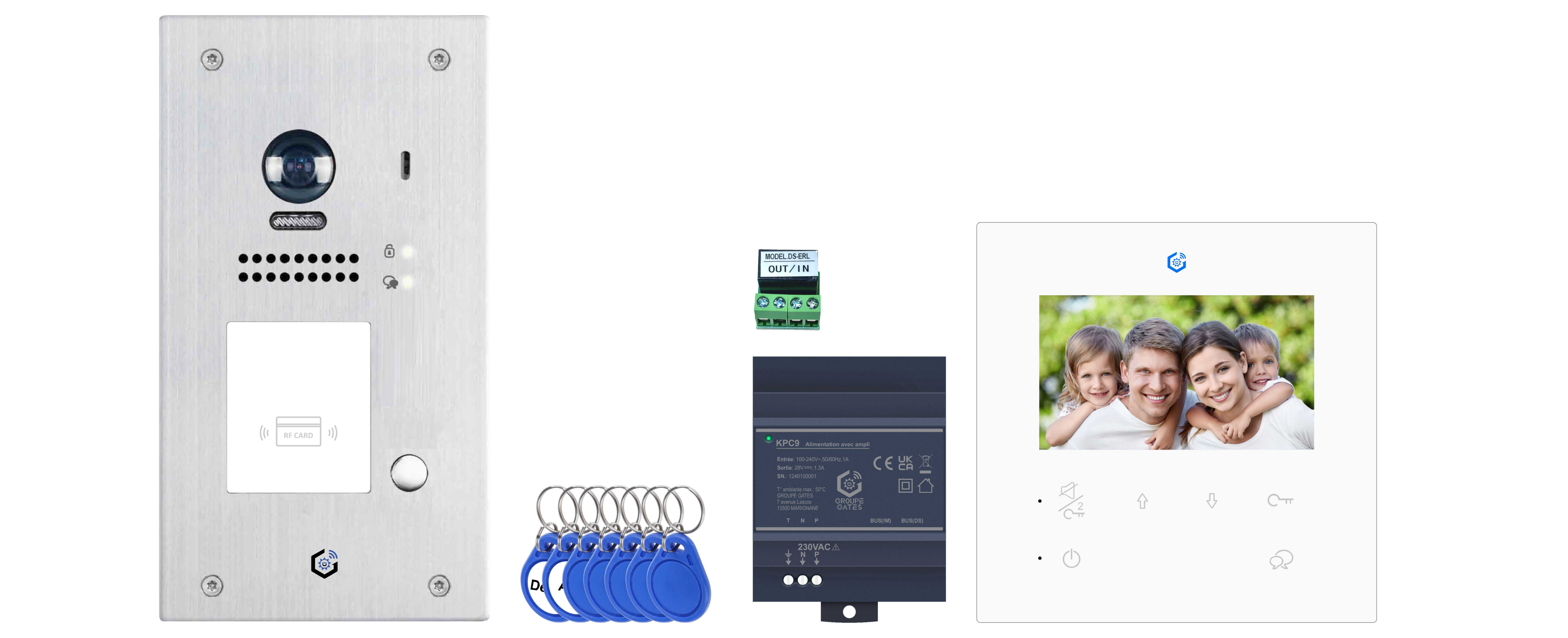 Découvrez le Kit de Visiophonie 2EASY-MINI-CRYSTOS-PE-170 de GATES FRANCE, alliant la platine de rue KDT-607PE-170, le Moniteur MINI-CRYSTOS et l'alimentation KPC7 pour une solution complète de surveillance et de communication intelligente.