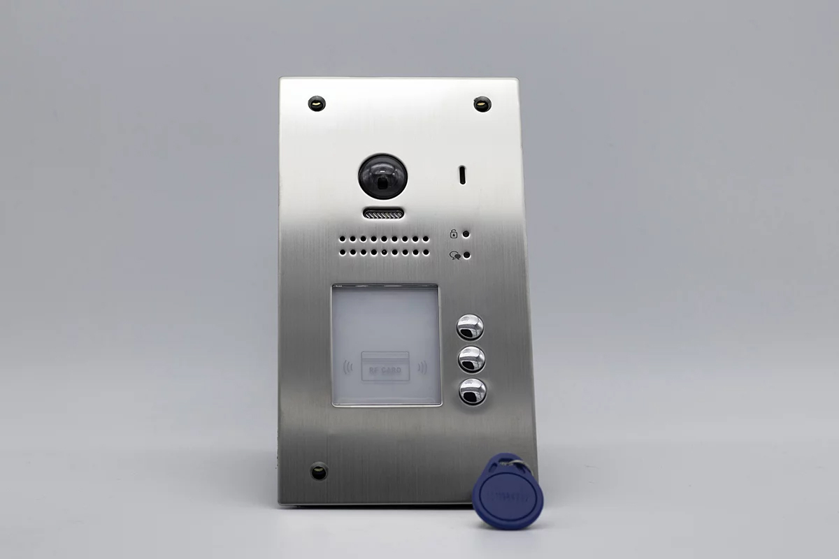 Découvrez la platine de rue KDT-607PE3-170, une caméra extérieure grand angle conçue pour renforcer la sécurité de votre domicile et simplifier votre quotidien grâce a ces badges programmables et ces 3 boutons d'appel.