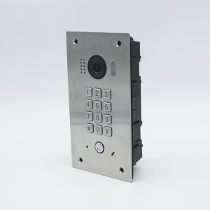Platine encastrée avec clavier anti-vandale et caméra grand angle 170°.