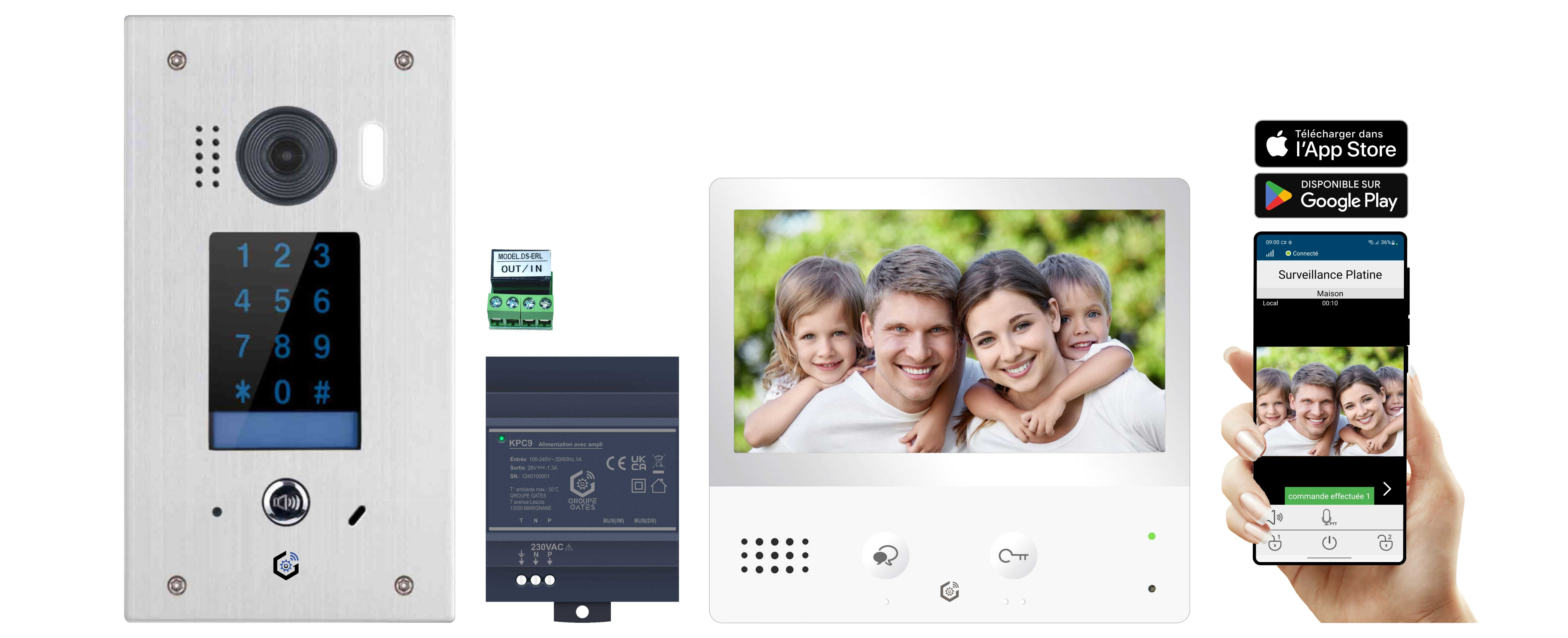 Découvrez le Kit de Visiophonie 2EASY-CRYSTALIA-CE-170-316-IP de GATES FRANCE, alliant la platine de rue KDT-611E-170-316, le Moniteur CRYSTALIA-IP, et l'alimentation KPC7 pour une solution complète de surveillance et de communication intelligente.